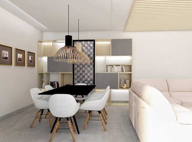 Il progetto prevede la riorganizzazione della casa su due piani e la sistemazione del giardino d’ingresso. L’area esterna che farà da accesso all’abitazione è stata organizzata su due livelli: un piano a livello della strada d’ingresso, che comprende il vialetto e la porzione pavimentata antistante la facciata adibita a zona pranzo; l’altra zona, posta ad una quota rialzata, comprende il salottino coperto e la zona relax. I due alberi esistenti risultano integrati nel progetto, con una vasca che li contiene e che serve al tempo stesso ad integrare una seduta e a distinguere le varie zone. Compreso tra i due alberi si sviluppa un salottino coperto fiancheggiante una fontana, che contribuisce a creare una perfetta area relax. Nella parte inziale del giardino è prevista una zona solarium ed un’area verde. La distribuzione su due livelli consente di creare una schermatura alla vista dei vicini, assicurando così la privacy. Una legnaia è creata in adiacenza alla zona pranzo all’aperto. Al piano terra del fabbricato è stato creato una zona soggiorno con area pranzo e zona divani, distinte tramite un diverso utilizzo dei controsoffitti che servono ad integrare un sistema di illuminazione che assicuri una luce artificiale dall’effetto molto diffuso. La parete con il camino è rivestita in pietra, ed una panca in cemento, che corre sulla parete della tv e sotto la finestra, contribuisce a creare ulteriori sedute e piani d’appoggio. Il pavimento è in gres grande formato, ottimale per la resistenza e la tenuta allo sporco. Il primo piano è stato riorganizzato in modo da avere una zona cucina separabile tramite una vetrata scorrevole che una volta aperta va a sovrapporsi al muro assicurando un ingombro nullo. La cucina sfrutta la parte sottotetto e prevede una serie di armadi che possono essere attrezzati internamente per consentire l’utilizzo dei piccoli elettrodomestici. La zona notte risulta completamente separata dalla zona giorno. La camera da letto è stata pensata per avere una cabina armadio ed un bagno privato, posti in maniera tale da consentire l’accesso al bagno separato dalla zona letto.